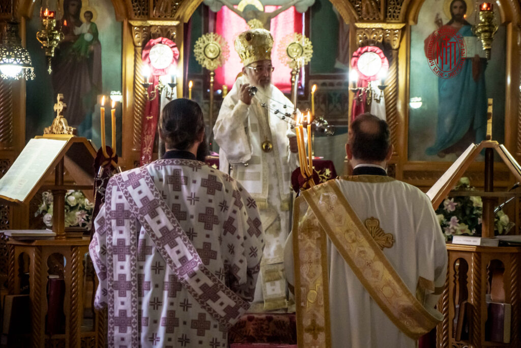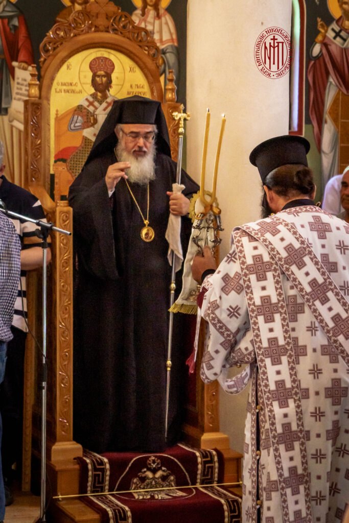 Τό απόγευμα της ίδιας μέρας χοροστάτησε στον εσπερινό στον εορτάζοντα Ιερό Ναό Αγίων Αποστόλων Τύριας Πρεβέζης και