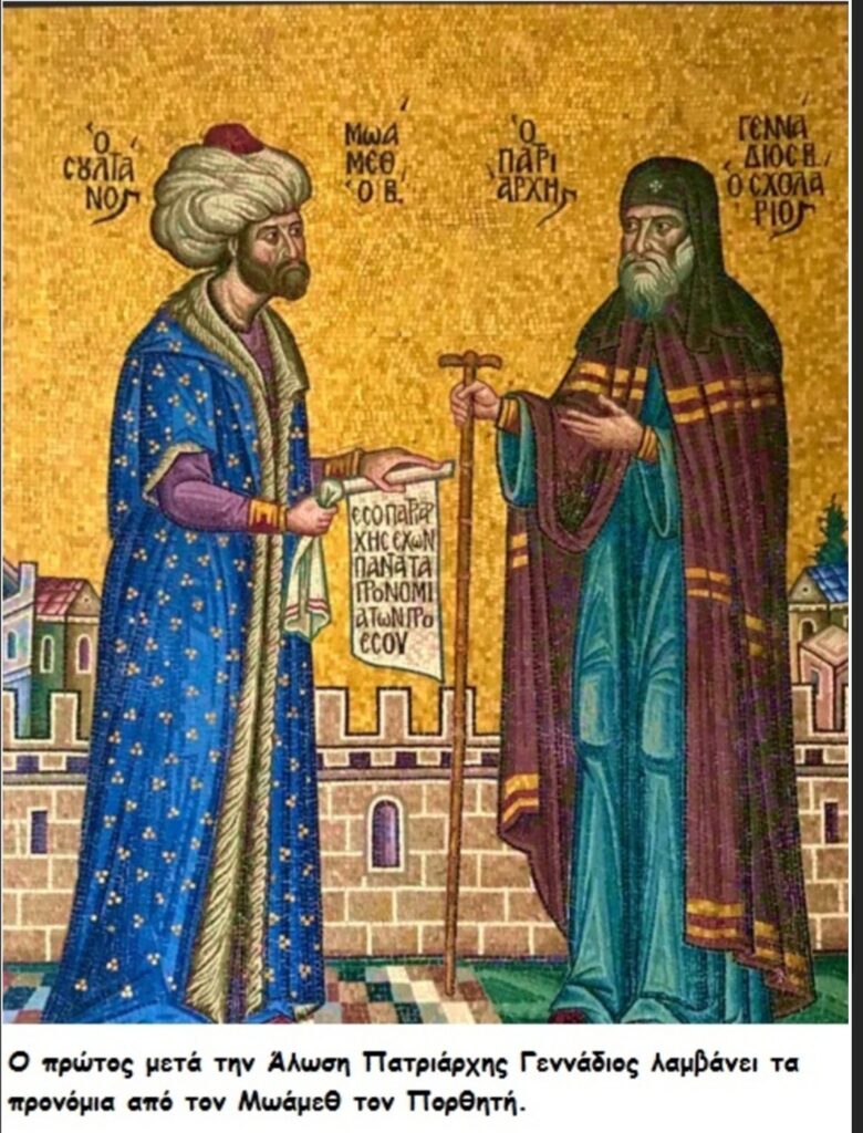 Στην Κωνσταντινούπολη, από το 1453, εγκαθίστανται οι Μουσουλμάνοι Σουλτάνοι (σουνίτικο Ισλάμ). Το Πατριαρχείο συνεχίζει την Ορθόδοξη οικουμενική του διακονία, απορρέουσα από τα προνόμια, που λαμβάνει ο Πατριάρχης Γεννάδιος, αμέσως μετά την άλωση. Ο Πατριάρχης Κωνσταντινουπόλεως έχει, όχι μόνο την εκκλησιαστική ευθύνη των Ορθοδόξων, του ρουμ μιλιέτ, αλλά και την πολιτική των ευθύνη. Γάμοι, διαζύγια, κληρονομικά θέματα, υιοθεσίες, εκπαιδευτήρια, φιλανθρωπικές δομές, υπάγονται στις αρμοδιότητες του Πατριαρχείου Κωνσταντινουπόλεως. Πρωτεύουσα της αυτοκρατορίας παραμένει και αυτή τη δεύτερη περίοδο, η Κωνσταντινούπολη, έως το 1923. Όποιος κατείχε την Κωνσταντινούπολη, είχε τότε και τον νομιμοποιητικό τίτλο του κυριάρχη της καθ’ ημάς Ανατολής. Είναι γνωστό ότι η αυτοκρατορία, εδαφικά, είχε συρρικνωθεί στους πριν την άλωση χρόνους. Οι Πατριάρχες με τους αυτοκράτορες, διαμόρφωσαν, εξακτίνωσαν και κατοχύρωσαν την πνευματική ακτινοβολία του Ορθόδοξου πολιτισμού. Οι Σουλτάνοι, ιδιαιτέρως μάλιστα μετά το 1519, όταν εγκαθίσταται το Χαλιφάτο στην Κωνσταντινούπολη, όπου παραμένει έως το 1923, οικοδομούν από την Κωνσταντινούπολη, την πολιτιστική ταυτότητα του Ισλάμ στην αυτοκρατορία. Η επικράτεια της αυτοκρατορίας της Κωνσταντινουπόλεως επανέρχεται στις εποχές της μεγάλης ακμής των αυτοκρατόρων της Κωνσταντινουπόλεως. Οι δύο θεσμοί, Πατριάρχης και Σουλτάνος, πορεύονται στην νέα πραγματικότητα. Βεβαίως, έχουμε Πατριάρχες, Ιεράρχες, κληρικούς και αξιωματούχους του Φαναρίου, αφοσιωμένους στο καθήκον της αποστολής των, που χάνουν τη ζωή τους από την Υψηλή Πύλη. Όμως, ο Ορθόδοξος πολιτισμός συνυπάρχει με τον Μουσουλμανικό, εν μέσω όλων αυτών.