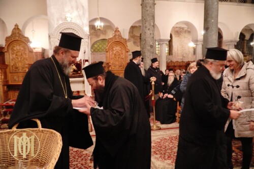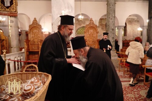 Ακολούθως, ο Ποιμενάρχης, ευλόγησε την βασιλόπιτα και στο τέλος, δόθηκαν οι διορισμοί των νέων μελών των Ενοριακών Φιλοπτώχων Ταμείων καθώς και η ευλογία της βασιλόπιτας.