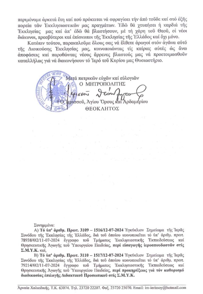 Ξεκινά η Λειτουργία των Σχολών Μαθητείας Υποψήφιων Κληρικών (Σ.Μ.Υ.Κ)