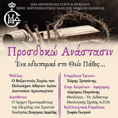 Η εκδήλωση τιτλοφορείται «Προσδοκώ Ανάστασιν… Ένα οδοιπορικό στο Θείο Πάθος», προσφέροντας στους παρευρισκόμενους μια βαθιά πνευματική εμπειρία μέσα από τους ύμνους της Μεγάλης Εβδομάδας.