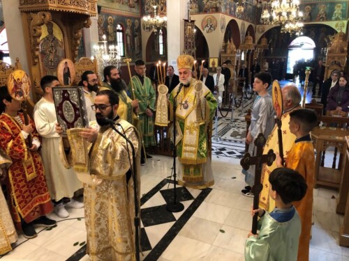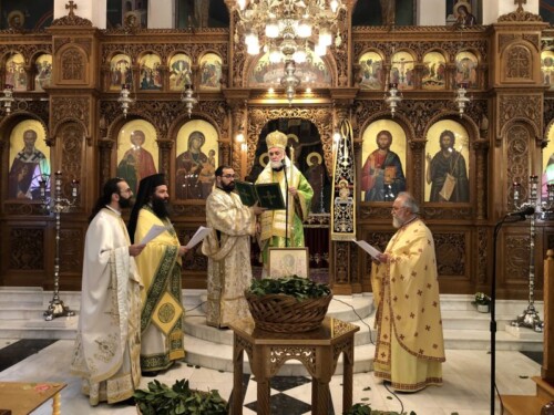 Μάλιστα ο Θεοφιλέστατος κ. Νικόδημος, κηρύσσοντας τον θείο λόγο, ανέπτυξε ερμηνευτικά το περιεχόμενο της αναγνωσθείσης ευαγγελικής περικοπής (Ιωάν. ιβ΄, 1-18), αλλά δεν παρέλειψε να επισημάνει στους εκκλησιασθέντες και την ανάγκη της συμμετοχής στα τελούμενα, καθώς πρέπει, πράγμα το οποίο στην Ενορία τους ενθαρρύνεται από το έργο υπέρ της νεότητας και της καλλιέργειας του γνησίου βυζαντινού μέλους, στα οποία πρωτεύουν, διά της εργασίας τους, οι καλοί τους εφημέριοι πρωτοπρεσβ. Νικόλαος Αργυρίου και οικον. Χρήστος Νγκέλας. Μάλιστα επαίνεσε την παρουσία πολλών παιδιών στο ι. Βήμα και στα αναλόγια και τόνισε στους πιστούς ότι εξ’ απαλών ονύχων τα παιδιά λαμβάνουν την αγωγή της Εκκλησίας και, γι’ αυτό, ας μη διστάζουν οι γονείς να τα φέρνουν στην εκκλησία από την τρυφερή αυτή ηλικία, έστω κι αν δεν γνωρίζουν πώς να σταθούν, είναι σε τόπο ασφαλή και σε τόπο σωστής ανατροφής.