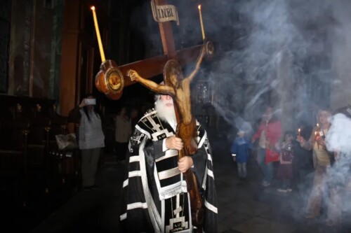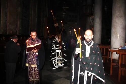 Κατά την περιφορά του ιερού Επιταφίου ο Μακ.Πατριάρχης ανέπεμψε δέηση υπερ αναπαύσεως των αοιδίμων Προκατόχων Του ενώπιον του Πατριαρχικού Μεγάρου, υπέρ των αοιδίμων Προέδρων και Μελών της Ελληνικής Κοινότητος της Μ.Πόλεως και υπέρ των Μεγάλων Εθνικών Ευεργετων. Ακόμη, διαπύρως προσευχήθη υπέρ επικρατήσεως της ειρήνης στην πολύπαθη περιοχή της Μ.Ανατολής, στην Ουκρανία, στην Αφρική και όπου γης δοκιμάζονται οι λαοί από πολεμικές συρράξεις και αδελφοκτόνες αιματοχυσίες.