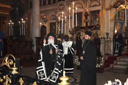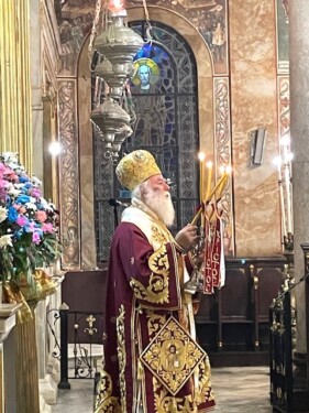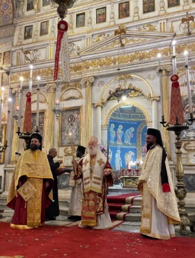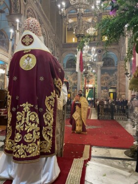 Τέλος, η Τελετή της Αναστάσεως και η Πατριαρχική Θεία Λειτουργία έλαβε χώρα στον πάγκαλλο Καθεδρικό Ναό της Μ.Πόλεως, προεξάρχοντος του Μακαριωτάτου και συλλειτουργούντος του Αρχιερατικώς Προϊσταμένου του Ναού, Σεβασμιωτάτου Μητροπολίτου Πτολεμαΐδος κ.Παντελεήμονος, Αρχιγραμματέως της Αγίας και Ιεράς Συνόδου του Πρεσβυγενούς Πατριαρχείου, ο οποίος ανέγνωσε την ακόλουθη Πατριαρχική Απόδειξη επί τω Αγίω Πάσχα 2025 του Σεπτού Αλεξανδρινού Προκαθημένου: