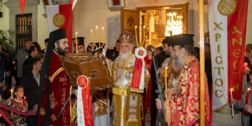Η «Ἑορτή τῶν Ἑορτῶν καί Πανήγυρις τῶν Πανηγύρεων», όπως προσφυέστατα έχει χαρακτηρισθεί το Άγιο Πάσχα, τιμήθηκε με κάθε επισημότητα και μέσα σε κλίμα πνευματικής ευφορίας και αναστάσιμης χαράς στον Ιερό Μητροπολιτικό Ναό Αγίας Τριάδος Μυρίνης. Αναλυτικότερα, το βράδυ του Μ. Σαββάτου τελέσθηκε η ακολουθία της Παννυχίδος, προ του τέλους της οποίας ο Σεβ. Μητροπολίτης Λήμνου και Αγίου Ευστρατίου κ. Ιερόθεος, συνεπικουρούμενος από τους Εφημερίους του Ναού π. Ιερώνυμο, Πρωτοσύγκελλο της Ιεράς Μητροπόλεως, και π. Νικόλαο και τους Διακόνους π. Ηλία και π. Κυριακό, υποδέχθηκε στα προπύλαια του Ναού το Άγιο Φως, το οποίο μετέφερε ο Στρατιωτικός Ιερεύς π. Νικόλαος Μπάντρας, ενώ το στρατιωτικό άγημα απέδωσε τις προσήκουσες τιμές, παιανίζοντας εόρτια εμβατήρια.