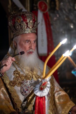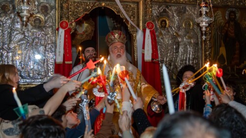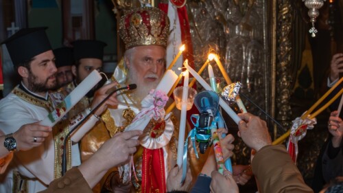 Στη συνέχεια, τελέσθηκαν ο Πανηγυρικός Όρθρος και η Αναστάσιμη Θ. Λειτουργία, ιερουργούντος του Σεβ. κ. Ιεροθέου, ενώ αξιοσημείωτο είναι το γεγονός ότι καθ’ όλη τη διάρκεια των ιερών ακολουθιών ο Ναός ήταν κατάμεστος από ευλαβείς χριστιανούς, οι περισσότεροι από τους οποίους αγρύπνησαν, προκειμένου να προσέλθουν στο Ποτήριο της Ζωής και να ενωθούν με τον Αναστημένο Χριστό.