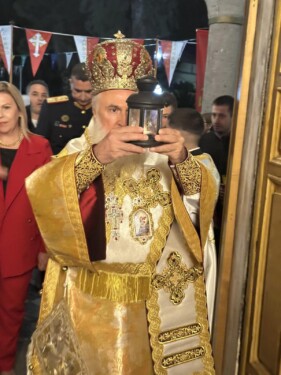 Προ του πέρατος της Θ. Λειτουργίας, ο Σεβ. Ποιμενάρχης , πιστός τηρητής των πατρώων παραδόσεων, ευλόγησε τα πασχαλινά αυγά και ευχήθηκε καρδιακά σε όλους, όπως ο «θανάτῳ θάνατον πατήσας» Ιησούς Χριστός χαρίζει στους ίδιους και στις οικογένειές τους χαρά, ειρήνη και αναστάσιμη ζωή στην καθημερινότητά τους.