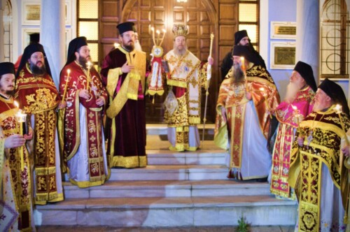 Το Μέγα Σάββατο το βράδυ προέστη της Παννυχίδος και της Τελετής της Αναστάσεως του Κυρίου μας και κατόπιν – κατά τις πρώτες πρωινές ώρες της Αγίας και Μεγάλης Κυριακής του Πάσχα, 20ης Απριλίου 2025 – της λαμπροφόρου Θείας Λειτουργίας της Ζωηφόρου Αναστάσεως του Κυρίου και Θεού και Σωτήρος ημών Ιησού Χριστού.