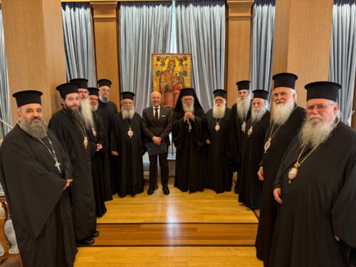 Στο διάλειμμα της χθεσινής Συνεδρίας, ο Μακαριώτατος και οι Σεβασμιώτατοι Συνοδικοί δέχθηκαν τον Υφυπουργό Υγείας κ. Δημήτριο Βαρτζόπουλο, ο οποίος τους ενημέρωσε περί θεμάτων της αρμοδιότητάς του, ενώ μετά τη λήξη της Συνεδρίας επισκέφθηκαν τη Συνοδική Ιερά Μονή Αγίου Συμεών του Νέου Θεολόγου, στον Κάλαμο Αττικής.