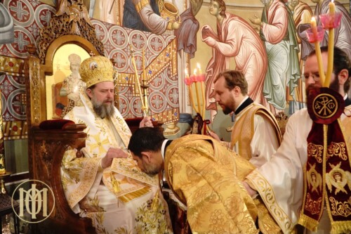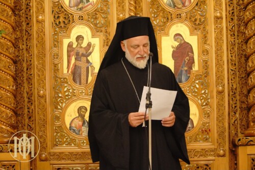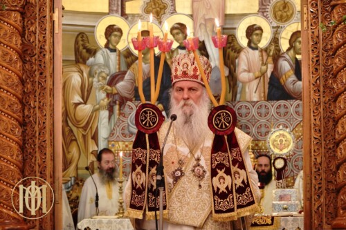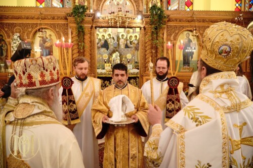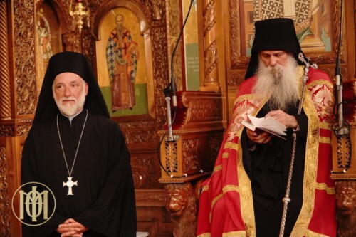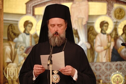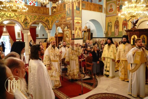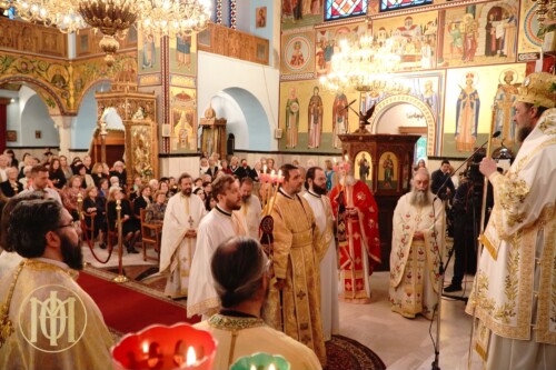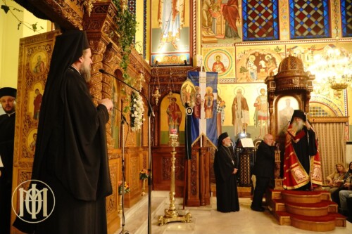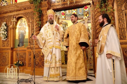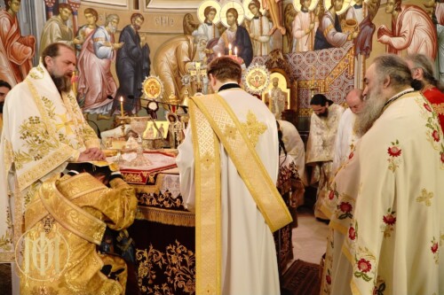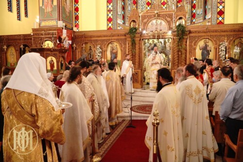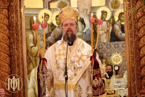 Στον Προσκυνηματικό Ιερό Ναό, τελέσθηκε το Πανηγυρικό Αρχιερατικό Συλλείτουργο, ιερουργούντος του Παναγιωτάτου Μητροπολίτου Θεσσαλονίκης κ. Φιλοθέου και συλλειτουργούντος του Πανιερωτάτου Επισκόπου Σλαβονίας κ. Ιωάννου εκ του Πατριαρχείου Σερβίας και συμπροσευχομένου από του Ιερού Βήματος, του Σεβ. Μητροπολίτου Βελεστίνου κ. Δαμασκηνού.
