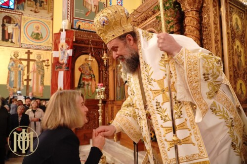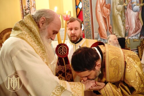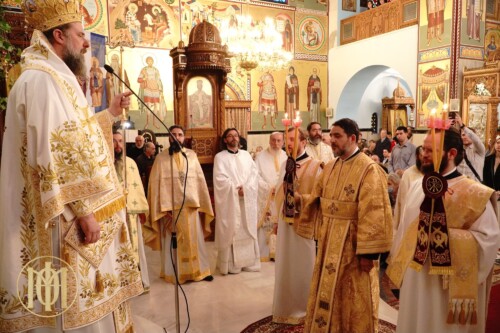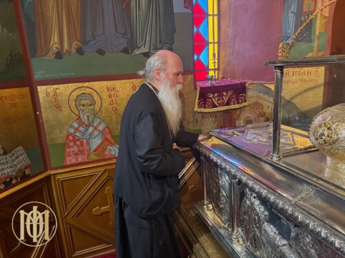 Το απόγευμα του Σαββάτου, 10 Μαΐου 2025, στον Προσκυνηματικό Ιερό Ναό των αγίων Κυρίλλου και Μεθοδίου, των Ελλήνων Θεσσαλονικέων και φωτιστών των Σλάβων, τελέσθηκε ο Πανηγυρικός Αρχιερατικός Εσπερινός της εορτής. Στον Εσπερινό, χοροστάτησε ο Πανιερώτατος Επίσκοπος Σλαυονίας (εκ του Πατριαρχείου Σερβίας) κ. Ιωάννης και συμπροσευχομένων του Σεβασμιωτάτου Μητροπολίτου Βελεστίνου κ. Δαμασκηνού και του  Μητροπολίτου Θεσσαλονίκης κ. Φιλοθέου. Τον θείο λόγο, κήρυξε ο χοροστατὠν Ιεράρχης στην Σερβική γλώσσα ενώ ο Μητροπολίτης Θεσσαλονίκης  ανέγνωσε το κήρυγμα του Πανιερωτάτου στην Ελληνική.