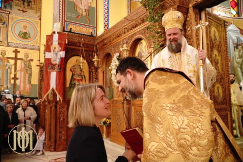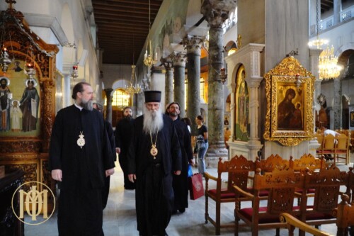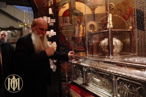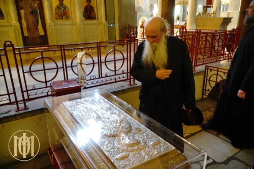 Μετά το τέλος της Θείας Λειτουργίας, ο Μητροπολίτης , συνόδευσε τον φιλοξενούμενο Ιεράρχη στα ιερά προσκυνήματα της πόλης μας, στον Προσκυνηματικό Ιερό Ναό του αγίου Δημητρίου του Πολιούχου όπως επίσης και στον Μητροπολιτικό Ιερό Ναό του αγίου Γρηγορίου του Παλαμά.