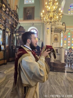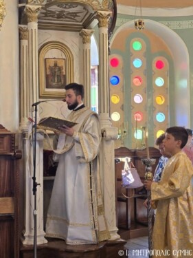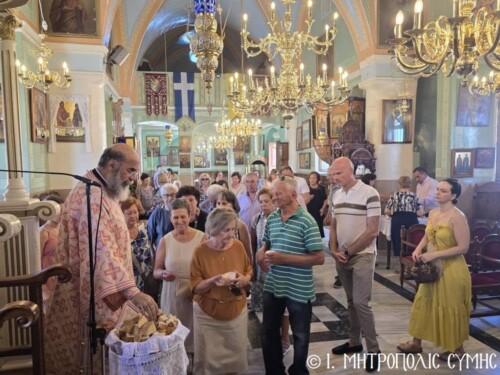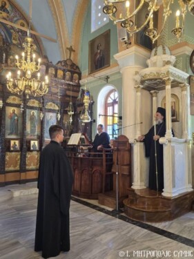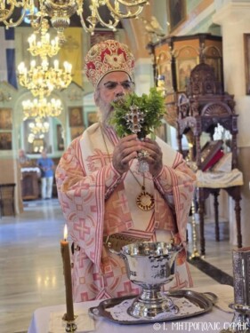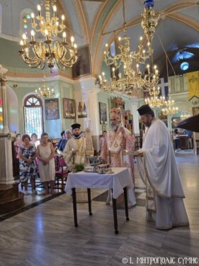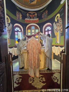 Τήν 6ῃ Ἰουλίου 2025, Κυριακή Δ΄ Ματθαίου, ὁ Σεβ. Μητροπολίτης Σύμης κ. Χρυσόστομος σύμφωνα μέ τό ἀνακοινωθέν πρόγραμμά του, χοροστάτησε στόν Ὄρθρο, τέλεσε τόν Ἁγιασμό τοῦ ἀρξαμένου νέου μηνός καί τήν Θ. Λειτουργία στόν Ἱ. Ἐνοριακό Ναό Εὐαγγελισμοῦ Θεοτόκου Σύμης, μέ συλλειτουργούς του τόν Ἐφημέριο π. Ἀντώνιο Μανιᾶ καί τόν Ἱεροδιάκονο π. Παῦλο Τερεζάκη. Τήν ἱ. ὑμνωδία ἀπέδωσαν ἐναρμονίως οἱ Ἱεροψάλτες κ. Ἀγαπητός Μιχελλής, κ. Δημοσθένης Γιανναρᾶς καί κ. Ἐλευθέριος Ξηράκης.