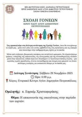2η συνάντηση Σχολής γονέων στον Άγιο Δημήτριο Πετρουπόλεως Αττικής