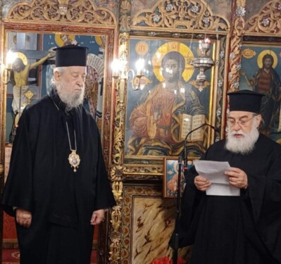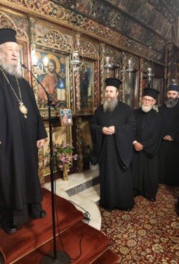 Τέλος, ο π. Ελευθέριος εξέφρασε τις θερμές ευχαριστίες και ευχές του κλήρου και του λαού της Μητροπόλεως Καρυστίας προς το σεπτό πρόσωπο του αξιομίμητου Αρχιερέως.