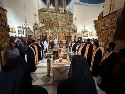 Αυτός ο τόπος, αυτή η κοινωνία θα πρέπει, επιτέλους, να απαλλαγεί από τις παθογένειες της, η δε άρνηση της αλήθειας ισοδυναμεί με  συνενοχή», κατέληξε. Ακολούθως ο προεξάρχων της λατρευτικής Συνάξεως, Σεβ. Μητροπολίτης Ιεραπύτνης και Σητείας κ.Κύριλλος κατέθεσε την δική του εμπειρία, από την περυσινή ιερά πανήγυρι του Αγίου Νεκταρίου, όπου ήταν προσκεκλημένος και εκεί του απεκάλυψε ο Σεβ. Ποιμενάρχης κυρός Δαμασκηνός «του χρόνου τέτοια μέρα δεν θα ζω», συνεχίζοντας: «βίωνε τον θάνατο και όχι μόνο τον είχε ξεπεράσει αλλά γνώριζε και από πριν την εξέλιξη του. Όταν τον επισκέφθηκα στην Αθήνα του είπα ‘να γίνεις καλά να  σε πάρουμε κάτω’ και εκείνος μου απάντησε ‘θα πάμε πάνω και εκεί θα  συναντηθούμε, όταν θελήσει ο Κύριος.», κατέληξε. Ακολούθησε φιλοξενία εκ μέρους της Ενορίας σε όλους τους μετέχοντες.