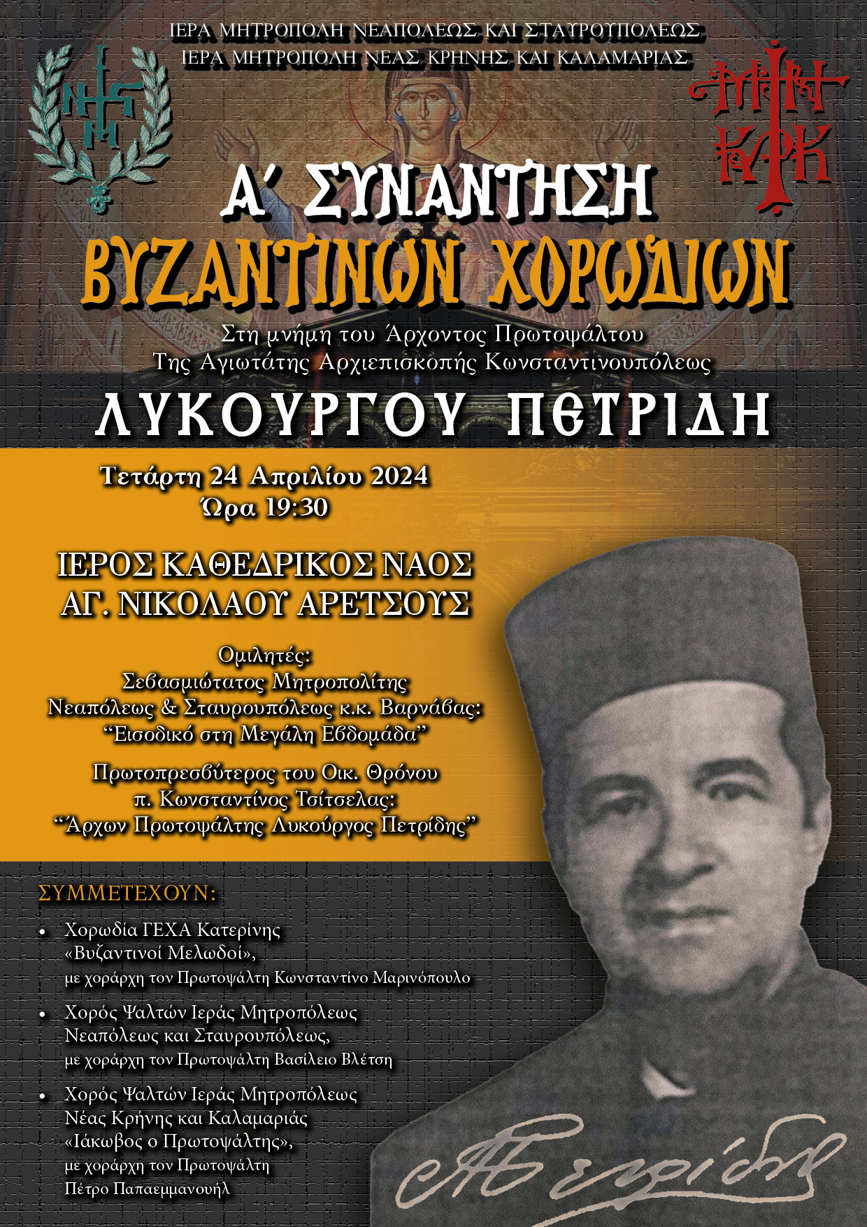 Α’ Συνάντηση Βυζαντινών Χορωδιών στη μνήμη του Λυκούργου Πετρίδη στον Ι.Κ.Ν. Αγ. Νικολάου Αρετσούς απόψε