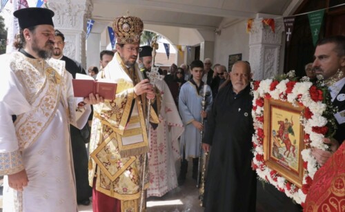 Μετά το πέρας της Θείας Λειτουργίας πραγματοποιήθηκε με ευλάβεια η λιτάνευση της Ιεράς Εικόνας του Αγίου Δημητρίου πέριξ του ναού, παρουσία πολυπληθούς εκκλησιάσματος, το οποίο συμμετείχε προσευχητικά και με συγκίνηση στην τιμή του μεγάλου Μάρτυρος της Εκκλησίας μας.