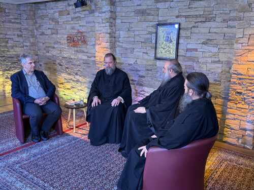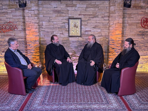 Ο Πρωτοπρεσβύτερος π. Σπυρίδων Τσιμούρης, Θεολόγος, Εκπαιδευτικός, φιλοξένησε τον Σεβασμιώτατο Μητροπολίτη Θεσσαλονίκης κ. Φιλόθεο, τον κ. Πέτρο Παναγιωτόπουλο, Αναπληρωτή Καθηγητή Ηθικής και Κοινωνιολογίας στη Θεολογική Σχολή του Α.Π.Θ. και τον π. Χρήστο Κούρτη, κληρικό της Ιεράς Μητροπόλεως Γρεβενών, σε μια συζήτηση με θέμα «Η τέχνη της θεολογίας».