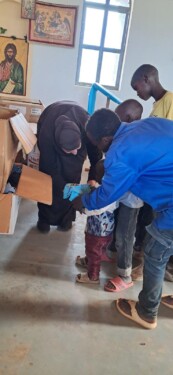 Με πνεύμα αγάπης και αθόρυβης διακονίας, Ιερείς της Ιεράς Μητροπόλεως Αρούσας και μοναχές της Ιεράς Μονής Αρχαγγέλου Μιχαήλ Κινταμάλι μετέβησαν στον Ιερό Ναό του Αγίου Παρθενίου στο χωριό Μκόμπε, όπου και διένειμαν είδη ρουχισμού και υποδήματα σε μικρούς και μεγάλους αδελφούς μας, κατοίκους της περιοχής που δοκιμάζονται καθημερινά από τη φτώχεια και τις στερήσεις. Η παρουσία τους έγινε πηγή παρηγοριάς και ελπίδας, καθώς η αγάπη εκφράστηκε έμπρακτα, μέσα από τη φροντίδα και το ενδιαφέρον προς τους πτωχούς κατοίκους του χωριού.