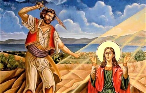 Έτσι ο ειδωλολάτρης και σκληρόκαρδος πατέρας της άρχισε να επιθυμεί ερωτικά την ίδια του την κόρη και να νιώθει προς αυτή μία αστείρευτη σαρκική επιθυμία. Όταν η Μαρκέλλα διαπίστωσε τον αναίσχυντο χαρακτήρα του σαρκολάτρη πατέρα της, εγκατέλειψε το πατρικό σπίτι και αναζήτησε καταφύγιο στα βουνά της περιοχής. Τότε ο πατέρας της κινούμενος από τις κτηνώδεις ορέξεις του και με απερίγραπτη μανία άρχισε να ψάχνει να βρει τη νεαρή και όμορφη Μαρκέλλα. Τότε η δύστυχη και έντρομη κόρη προσπάθησε να προστατευθεί και να σώσει την τιμιότητά της. Μία μεγάλη βάτος αποτέλεσε το ασφαλές καταφύγιο της Αγίας. Ένας βοσκός όμως αντιλήφθηκε τη Μαρκέλλα και υπέδειξε τη βάτο στον μανιακό πατέρα της. Τότε ο πατέρας έβαλε φωτιά στη βάτο για να την αναγκάσει να βγει έξω από αυτή. Η Μαρκέλλα κατάφερε και βρήκε διέξοδο και έτσι γλίτωσε από τα χέρια του σαρκολάτρη πατέρα της. Στη συνέχεια άρχισε να τρέχει πάνω στις πέτρες και τα βράχια, αλλά ο πατέρας της βλέποντας τη δυσκολία να την φτάσει, αποφάσισε να τη σημαδέψει με το τόξο του και έτσι εκτόξευσε προς αυτή ένα βέλος. Η Αγία πληγώθηκε και το αγνό της αίμα πότισε τα βράχια. Παρόλα αυτά δεν έχασε την ψυχική της δύναμη και συνέχισε να τρέχει. Οι σωματικές της δυνάμεις άρχισαν όμως να την εγκαταλείπουν και κάποια στιγμή έπεσε κάτω ταλαιπωρημένη και πληγωμένη. Η βαθιά και ακλόνητη πίστη της την βοήθησε να βρει τη σωτήρια λύση. Με τα μάτια στραμμένα στον Ουράνιο Νυμφίο προσευχήθηκε και Του ζήτησε να σχίσει τον βράχο και να την κρύψει μέσα. Η παράκληση της Αγίας έγινε πραγματικότητα και έτσι ο βράχος σχίστηκε και δέχτηκε το σώμα της ενάρετης Μαρκέλλας μέχρι το στήθος. Ο σαρκολάτρης πατέρας φτάνοντας στον τόπο και βλέποντας το παράδοξο αυτό θαύμα, οργίστηκε ακόμη περισσότερο και έκοψε με ένα μαχαίρι τους μαστούς της και τους πέταξε στο βουνό. Στη συνέχεια αποκεφάλισε την κόρη του και πέταξε την κεφαλή της στη θάλασσα. Σύμφωνα με την παράδοση μία ασυνήθιστη λάμψη άρχισε να εκπέμπεται από την κεφαλή της Αγίας, που στέφθηκε με τον ουράνιο και άφθαρτο στέφανο της άθλησης και της θεϊκής δόξας.