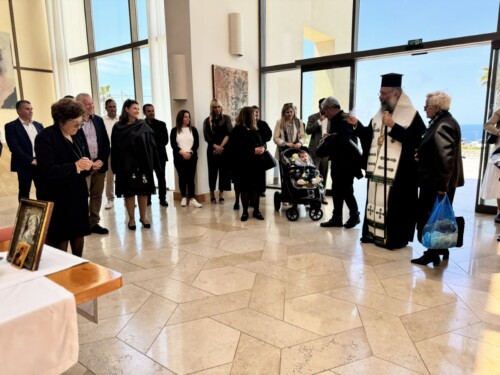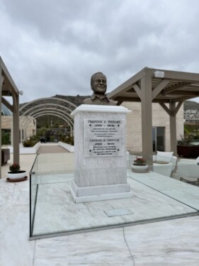 Επίσης, ο Σεβασμιώτατος τέλεσε Επιμνημόσυνη Δέηση ενώπιον της προτομής του μακαριστού Γεωργίου Τρούλη, ιδρυτού των ξενοδοχειακών μονάδων, ευχόμενος, μετά των οικείων και φίλων του, για την ανάπαυση της ψυχής του και τονίζοντας την αξία της τίμιας εργασίας, της αγάπης και της σεμνότητας, που πάντοτε δημιουργούν καλούς και ωφέλιμους καρπούς για τον τόπο μας.