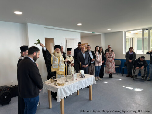 Σε κλίμα έκδηλης ικανοποίησης το πρωί της Τετάρτης 30 Απριλίου 2025 ο Σεβ. Μητροπολίτης Ιεραπύτνης και Σητείας κ. Κύριλλος τέλεσε τον Αγιασμό στο νέο κτίριο λειτουργίας του Κ.Δ.Α.Π. Α.μ.ε.Α. του Δήμου Ιεράπετρας, παρουσία του Δημάρχου Εμμανουήλ Φραγκούλη και άλλων εκπροσώπων της δημοτικής αρχής, εργαζομένων, ωφελουμένων και μελών των οικογενειών των ωφελουμένων της δομής.