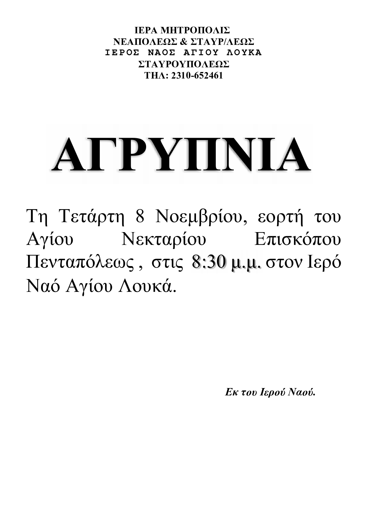 Αγρυπνία Αγίου Λουκά, στον Ομώνυμο ναό στην Σταυρούπολη Θεσσαλονίκης