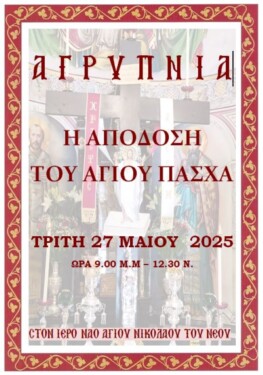 Αγρυπνία στον Ιερό Ναό του Αγίου Νικολάου του Νέου Θηβών