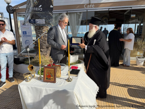 Ο Σεβ. αφού ευχαρίστησε ολόψυχα τον κ. Δήμαρχο για την τιμή, σημείωσε ότι η απονομή αυτή σηματοδοτεί την αγαστή συνεργασία της Τοπικής Εκκλησίας με τον Δήμο, αλλά και την προσωπική εκτίμηση προς το πρόσωπο του κ. Δημάρχου, προς όφελος και ανάδειξη της Σητείας και των ανθρώπων της.
