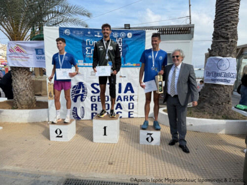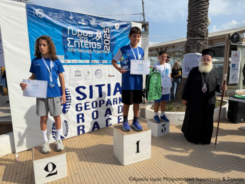 Στη συνέχεια χαιρέτισε την διεξαγωγή των αγώνων ο Δήμαρχος Σητείας κ. Γιώργος Ζερβάκης και αφού ευχαρίστησε τους συντελεστές και τον ΣΕΓΑΣ Κρήτης, που από φέτος οι αγώνες είναι ενταγμένοι στο επίσημο καλεντάρι του, απένειμε στον Σεβ. κ. Κύριλλο μία αναμνηστική πλακέτα, ως ένδειξη τιμής και σεβασμού για τη στήριξη και την προσφορά του στην τοπική κοινωνία.