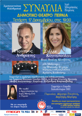 Η Συναυλία αυτή εντάσσεται σε σειρά φιλανθρωπικών και κοινωνικών δράσεων της Ιεράς Μητροπόλεως Πειραιώς, αφού όλες οι προσφορές που θα συγκεντρωθούν, θα διατεθούν στο πολύπλευρο και πολυσχιδές φιλανθρωπικό, εκπαιδευτικό και ιεραποστολικό έργο, το οποίο καλύπτει ανάγκες των συνανθρώπων μας χωρίς διακρίσεις σε χρώμα, φύλο, καταγωγή ή θρήσκευμα.