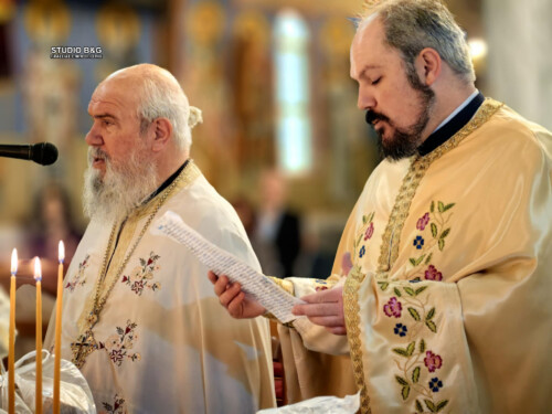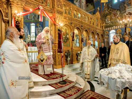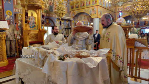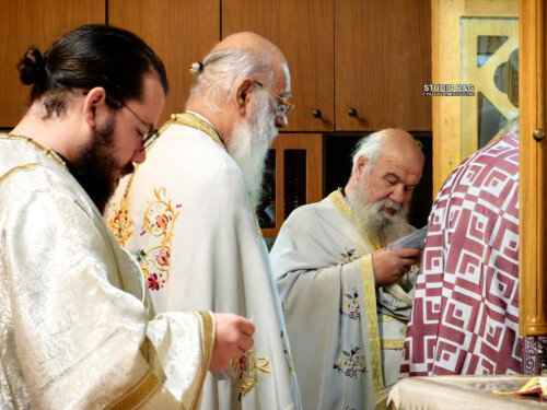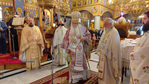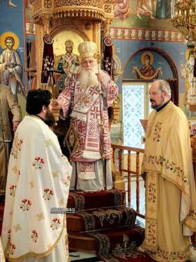 Μετά το πέρας της λειτουργίας οι εφημέριοι του ναού της Αγίας Ειρήνης, π. Δημοσθένης και π. Ηλίας Γάτσιος, ευχαρίστησαν τον Μητροπολίτη για την τιμή που έκανε να παραβρεθεί και να τελέσει την θεία λειτουργία στον εορτάζοντα ναό.