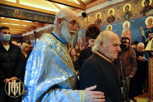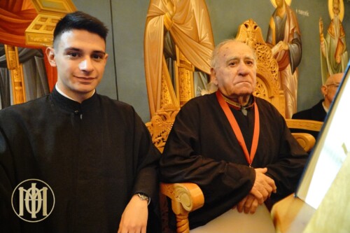 Προ της απολύσεως, ο Μητροπολίτης , απένειμε το χρυσό μετάλλιο του Αγίου Φιλοθέου, Πατριάρχου Κωνσταντινουπόλεως του Θεσσαλονικέως, καθώς και τιμητική πλακέτα εκ μέρους του Εκκλησιαστικού Συμβουλίου, στον επί πεντηκονταετία ιεροψάλτη του ναού κ. Γεώργιο Μπερμπερίδη.