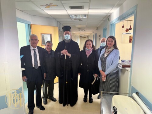 Πριν το τέλος της ομιλίας του, ο Μητροπολίτης, συνεχάρη τους εφημερίους, της ενορίας της Μεταμορφώσεως του Σωτήρος,για το μεγάλο και σπουδαίο ποιμαντικό έργο που επιτελούν και στέκονται κοντά τους ασθενείς που νοσηλεύονται στο παρόν νοσηλευτικό ίδρυμα της πόλης μας, καθώς επίσης και στην πνευματική στήριξη που προσφέρουν στους συγγενείς των ασθενών.