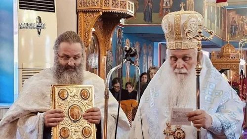 Νωρίτερα τελέσθηκε η ακολουθία του Όρθρου. Παρά τις κακές καιρικές συνθήκες προσήλθαν αρκετοί πιστοί στη Θεία Λειτουργία. Ο Σεβασμιώτατος μετά το ευαγγέλιο κήρυξε τον θείο λόγο, αναφέρθηκε στην μεγάλη εορτή των Θεοφανείων,ιδιαιτέρως στο πρόσωπο του μεγάλου Βαπτιστού Ιωάννου καθώς και στο κήρυγμα του.