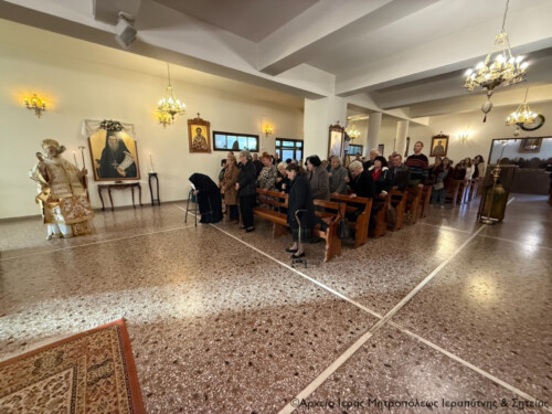 Τέλος ο Σεβασμιώτατος ευχήθηκε σε όλους την ευλογία και τις πρεσβείες του μεγάλου διορατικού και θαυματουργού αγίου της Εκκλησίας μας, και στον εορτάζοντα Πανοσιολ. Αρχιμ. Πορφύριο Αγγελάκη να έχει πλούσια τη χάρη και την ενίσχυση του αγίου στον ιερατικό του δόλιχο.