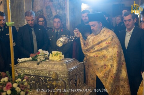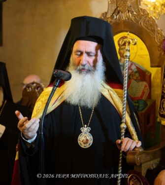 Χοροστάτησε και εκήρυξε τον Θείο λόγο ο Σεβασμιώτατος Μητροπολίτης Κεφαλληνίας κ. Δημήτριος, συγχοροστατούντων των Σεβασμιωτάτων Μητροπολιτών Αρκαλοχωρίου, Καστελλίου και Βιάννου κ. Ανδρέου και του Σεβασμιωτάτου Μητροπολίτου Άρτης κ. Καλλινίκου.