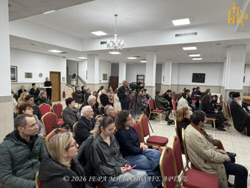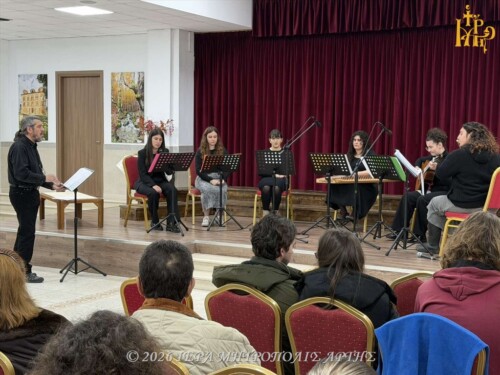 Πραγματοποιήθηκε την Τετάρτη 1η Απριλίου 2026, το απόγευμα, στο Πνευματικό Κέντρο του Ενοριακού Ιερού Ναού του Αγίου Μάξιμου του Γραικού στην Άρτα, η εκδήλωση του Φοιτητικού Μουσικού Συνόλου της Σχολής Εκκλησιαστικής Μουσικής της Ιεράς Μητροπόλεως Άρτης, με τίτλο: «Ήχος και λόγος της Άνοιξης – ο δρόμος για την Μεγάλη Εβδομάδα».