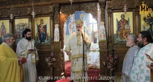 Την Κυριακή των Μυροφόρων, 26 Απριλίου 2026, το πρωΐ, ο Σεβασμιώτατος Μητροπολίτης Άρτης κ. Καλλίνικος ελειτούργησε στον ενοριακό Ιερό Ναό Παμμεγίστων Ταξιαρχών, στη πόλη της Άρτας.