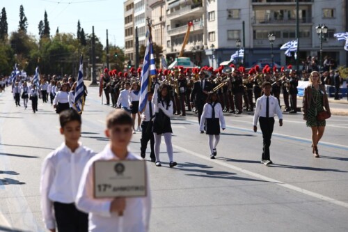 Πραγματοποιήθηκε η μαθητική παρέλαση στο κέντρο της Αθήνας, για τον εορτασμό της Εθνικής Επετείου της 28ης Οκτωβρίου 1940.
