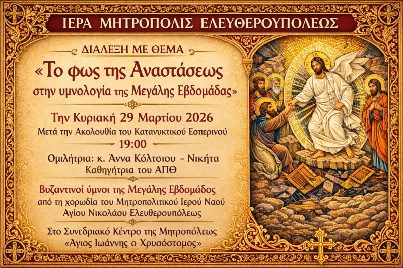 Η Ιερά Μητρόπολη Σάμου, Ικαρίας και Κορσεών και το Κατηχητικό Αγίου Νικολάου Καρλοβασίου διοργανώνουν εκδήλωση με τίτλο «ΕΛΕΥΘΕΡΟΙ ΣΤΗΝ ΨΥΧΗ», αφιερωμένη στους Νεομάρτυρες της πίστεώς μας. Η εκδήλωση θα πραγματοποιηθεί την Κυριακή 22 Μαρτίου στις 7:00 μ.μ., στην Αίθουσα Πολιτισμού Δήμου Δυτικής Σάμου (δίπλα στο παλιό τελωνείο), στο Λιμάνι Καρλοβασίου. Το πρόγραμμα περιλαμβάνει χορωδιακά μέλη […]