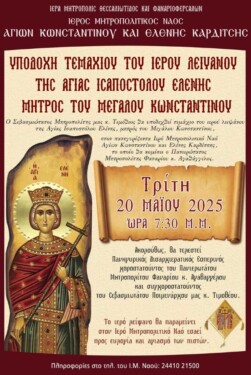 Υποδοχή ἱεροῦ λειψάνου τῆς Ἁγίας Ἰσαποστόλου Ἑλένης, μητρός τοῦ Μεγάλου Κωνσταντίνου στήν Καρδίτσα