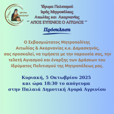 Ιερό Ευχέλαιο και ομιλία από τον Μητροπολίτη Αργολίδας στον Ι.Ν. Ευαγγελίστριας Ναυπλίου σήμερα