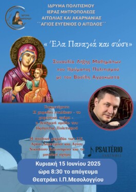Συναυλία Λήξης Μαθημάτων του Ιδρύματος Πολιτισμού της Ι.Μ. Αιτωλοακαρνανίας « ΑΓΙΟΣ ΕΥΓΕΝΙΟΣ Ο ΑΙΤΩΛΟΣ»