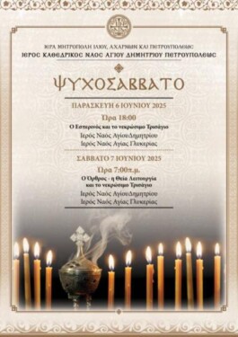 Ψυχοσάββατο στον Ιερούς Ναούς Αγίου Δημητρίου και Αγίας Γλυκερίας Πετρουπόλεως
