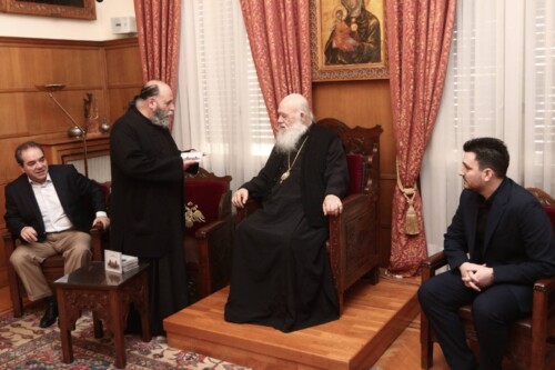 Ο Αρχιεπίσκοπος στην τελετή κοπής της Βασιλόπιτας της Πανελλήνιας Ένωσης Φαρμακοβιομηχανίας.