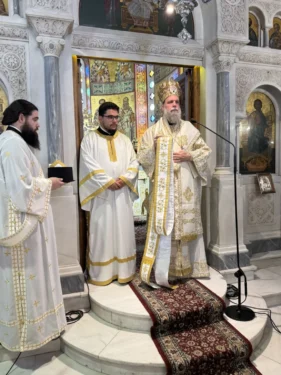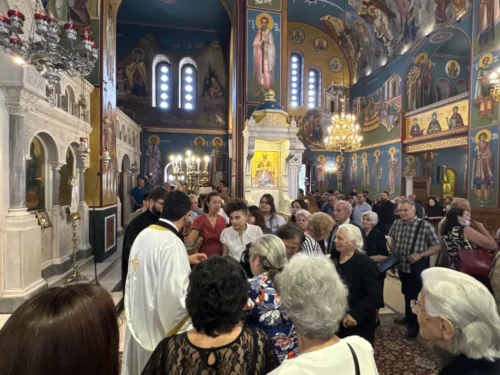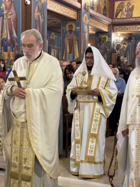 Μετά το πέρας της Θείας Λειτουργίας, ο π. Σπυρίδων, με την ευλογία και προτροπή του Σεβασμιωτάτου, διένειμε το αντίδωρο και δέχθηκε τις ευχές του εκκλησιάσματος.