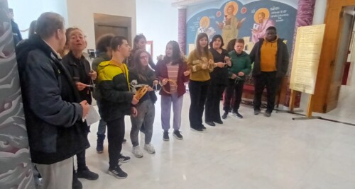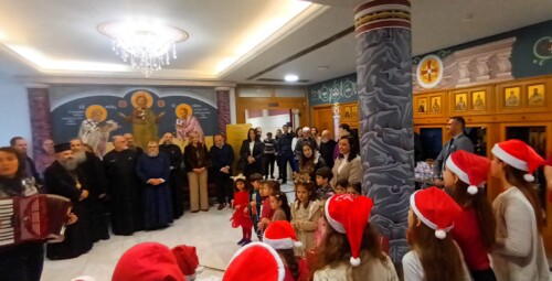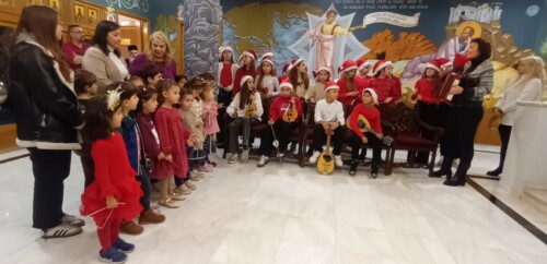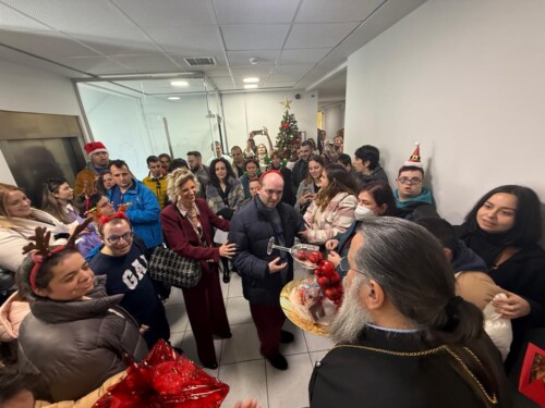 Εν όψει των εορτών της Θείας Επιφανείας, την Τετάρτη 17 Δεκεμβρίου 2025 έψαλαν τα κάλαντα παρόντος του Αρχιγραμματέως της Ιεράς Συνόδου, Θεοφιλεστάτου Επισκόπου Σκιάθου κ. Ιωάννου, του Θεοφιλεστάτου Επισκόπου Επιδαύρου κ. Νικοδήμου, Γενικού Διευθυντού της ΕΚΥΟ, καθώς και Κληρικών και λαϊκών Συνοδικών Υπαλλήλων, ωφελούμενοι του Κέντρου Διημέρευσης και Ημερήσιας Φροντίδας Ατόμων με Αναπηρία «Νικόδημος Γραικός» του Ιδρύματος Περιθάλψεως Ατόμων με Νοητική Υστέρηση ή Σύνδρομο DOWN «Μαρία Κόκκορη», συνοδευόμενοι από την Διευθύντρια του Κέντρου κ. Μάρα Αναστασοπούλου και συναδέλφους εκπαιδευτικούς.