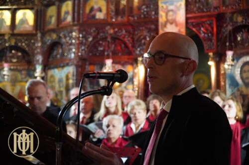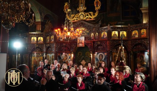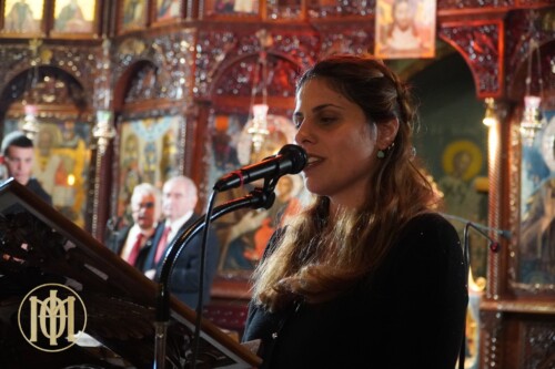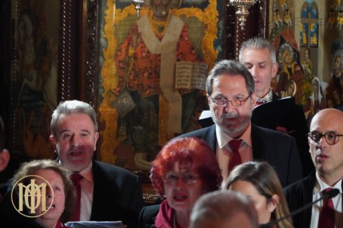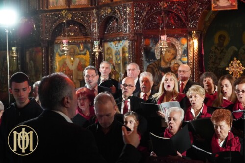Εν συνεχεία η νεοσύστατη χορωδία του Ιερού Ναού υπό τη διεύθυνση του κ. Χρήστου Βρατζόπουλου έψαλε ύμνους και κάλαντα από διάφορες περιοχές της Ελλάδας.